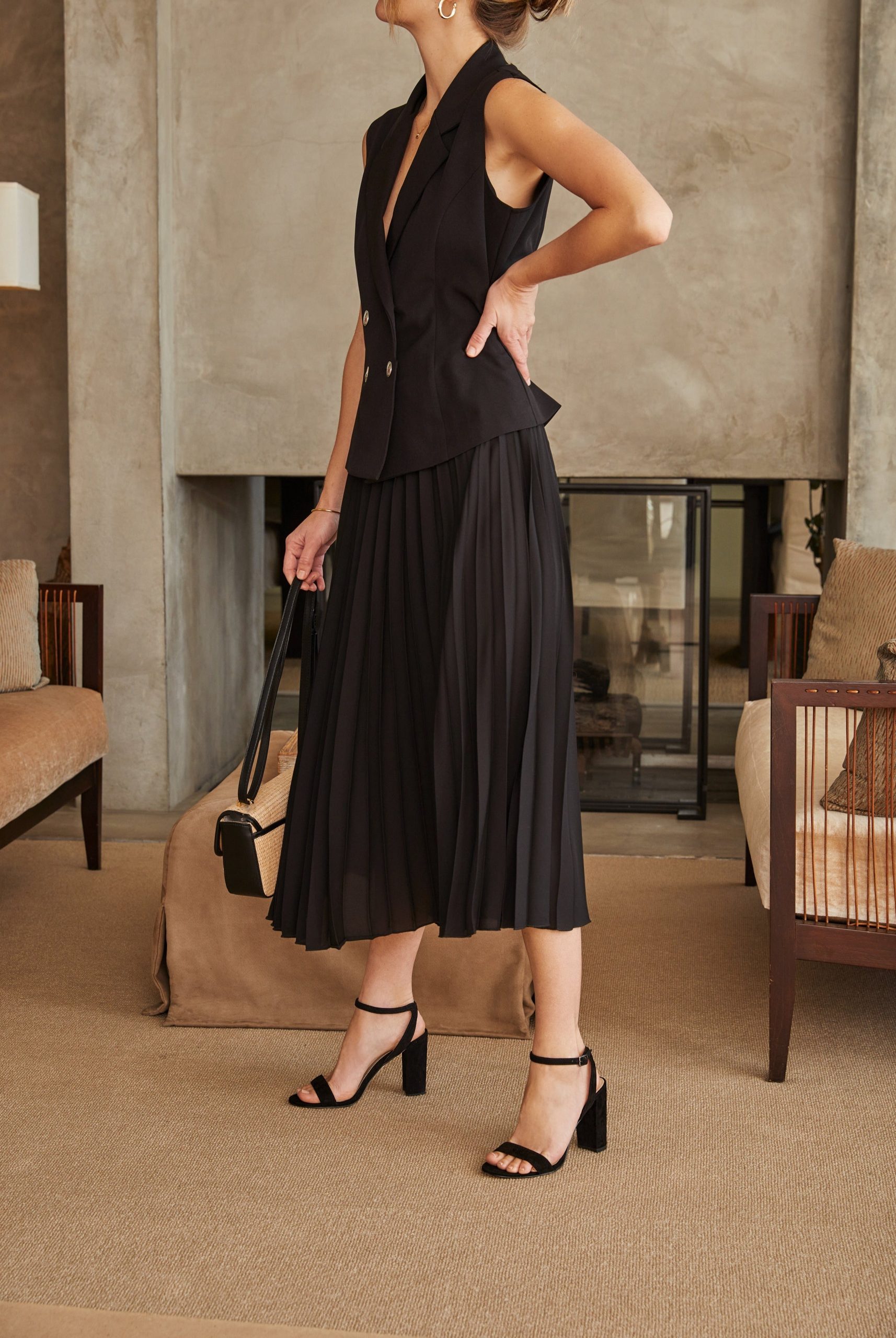 A classic ankle strap sandal with a chunky, block-heel. The perfect day to night shoe.